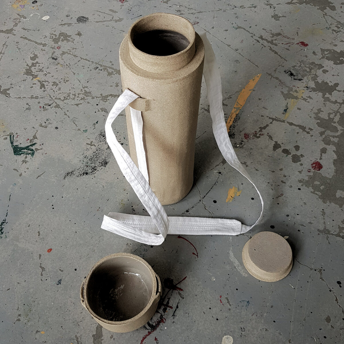 Enfant, Daphné passe chaque saison estivale et printanière dans un refuge de montagne du massif alpin des Écrins. Au-dessus de l’alpage il y a des falaises, des éboulis et des blocs de pierres. Là-haut, ses aventures d’enfance ont déterminé ses appétences artistiques actuelles, et son intérêt pour les grands espaces, les vides, ou les stratifications minérales. Iel reconnaît un plaisir confortable à la rugosité des roches qui permet l’accroche et empêche la chute, à l’inverse du lisse qui implique le glissement. Les outils de la céramique sont silencieux et le travail de la terre implique un rythme de fabrication très lié aux conditions météorologiques. Aujourd’hui, selon le mouvement de ses souvenirs et des images de ses randonnées, iel écrit et crée des formes plastiques de natures diverses. La marche est une activité à laquelle iel tient puisqu’elle autorise une pensée plastique itinérante. Elle ne va pas sans surprise, et détermine les associations inattendues entre les objets édités, photographiques et sculpturaux variés qui rythment les avancées de son travail. Dans le contexte réel de la montagne, qu’on pourrait facilement voir comme une métaphore de l’art, Daphné souhaite échapper à l’automatisme imaginaire de vouloir voir « grand ». Iel tend à aller à l’encontre des ambitions d’immensité et de technologie que suscite l’image des sommets et le défi physique qu’elle peut susciter. Dans le contexte rural montagnard, moins influencé par l’immédiateté des médias et des modes de productions rapides, iel s’intéresse aux objets modestes susceptibles de produire de l’échange au cas par cas des relations et des rencontres. C’est ainsi que Daphné essaie de développer son travail avec patience.